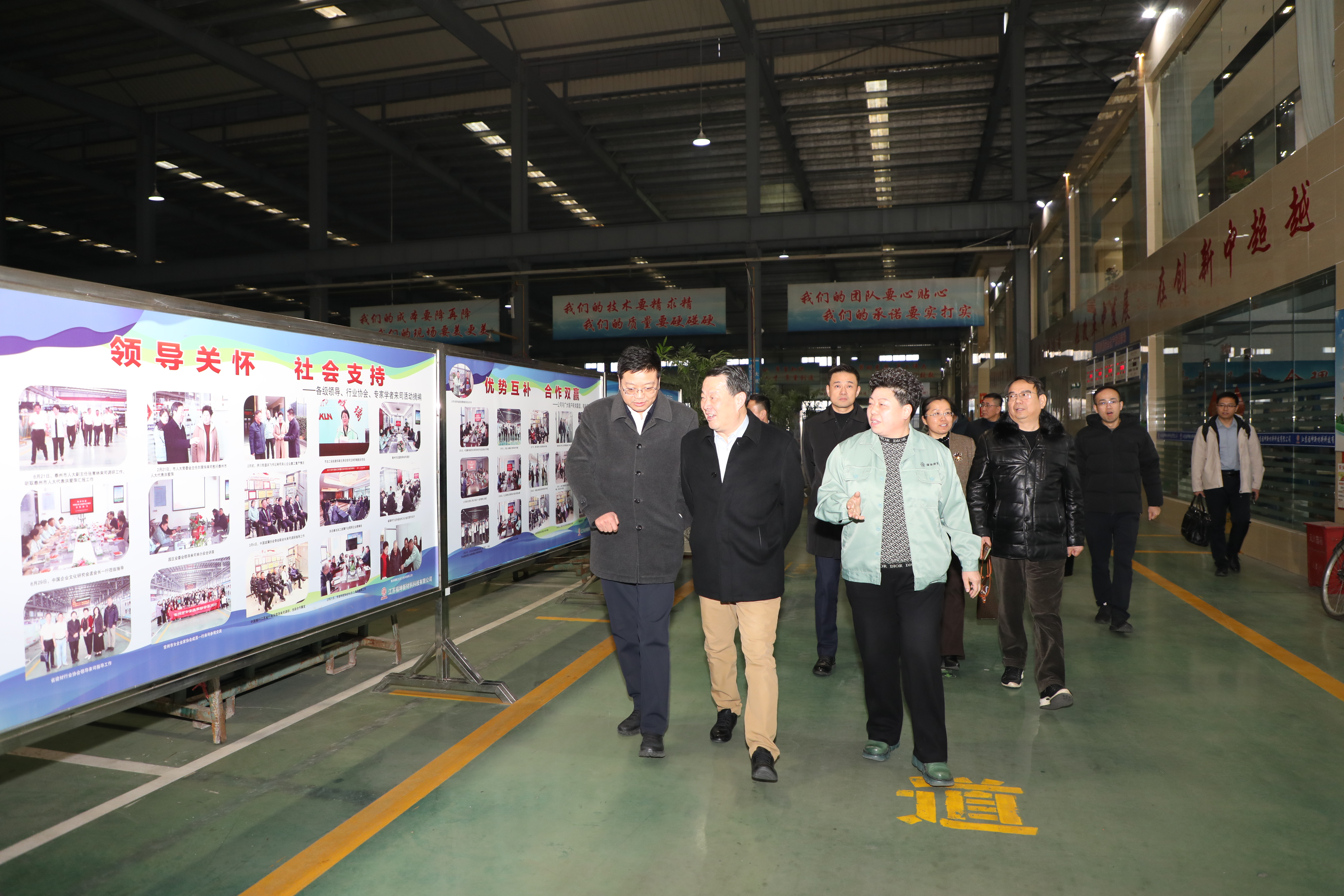2025年1月4日,中国工程院院士、中国建材集团首席科学家彭寿,率精锐团队莅临福坤考察调研。泰州市工信局及泰兴市政府、市工信局有关领导、福坤公司董事长兼总经理洪爱萍全程陪同调研。 聚焦福坤关联产品创新,彭院士深入论述:在超低能耗节能玻璃领域,如今节能减排备受重视,建筑能耗标准严苛。用新材料建设好房子,用新科技改造好房子是大势所趋,福坤等企业要抓住机遇,加大研发投入,做到节能与生能协同创新,彭院士指出,以发电幕墙玻璃为例,它既节能又生能。以导电防火玻璃与飞机舷窗玻璃为例,企业需将关乎生命安全的保障要素与导电变色、智能显示等炫酷前沿功能有机融合,浑然一体。如此一来,不但能够满足飞机等高端应用领域苛刻的安全标准,更能为乘客缔造出超乎想象的全新飞行体验。因此,企业务必勇于探索创新材料的应用领域,生产工艺精益求精,力求在降低能耗、践行绿色发展理念的同时,稳步提升玻璃的综合性能,以从容应对与日俱增的环保压力以及复杂多变的市场需求挑战。 他特别强调,中建材有关下属企业要与福坤深度合作。在技术研发上,双方应建立联合研发机制,共享技术资源与科研成果,加快创新步伐;在市场拓展方面,整合销售渠道,共同开拓国内外市场,提升产品市场占有率;在人才培养上,开展人才交流与培训活动,为双方企业培育高素质专业人才,助力产业长远发展 。