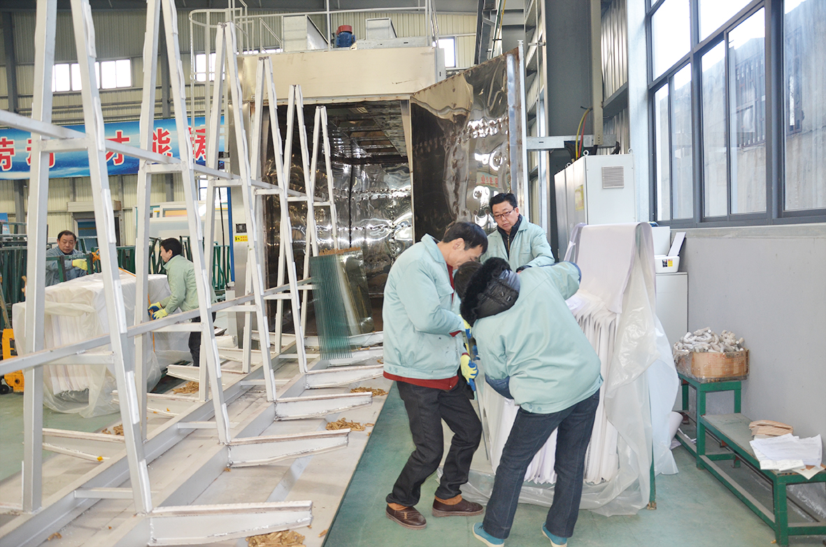 1月18日,公司接到上海耀皮委托为斯里兰卡加工 “三无刚热浸(钢化)玻璃”的订单。该批产品需要进行均质处理,据悉,这是耀皮将需要均质处理的产品委托给外协单位进行加工,这是客户的信任,更是一场考验。同期需要生产的还有远泰公司的“8mm水晶灰彩釉钢化夹胶玻璃”,其单片玻璃面积就将近4平 方 米,同时需要经过切割、洗磨、丝印、钢化、夹胶五道工序。加工时间长、手续繁琐、玻璃板面大、质量重,装卸极为麻烦。