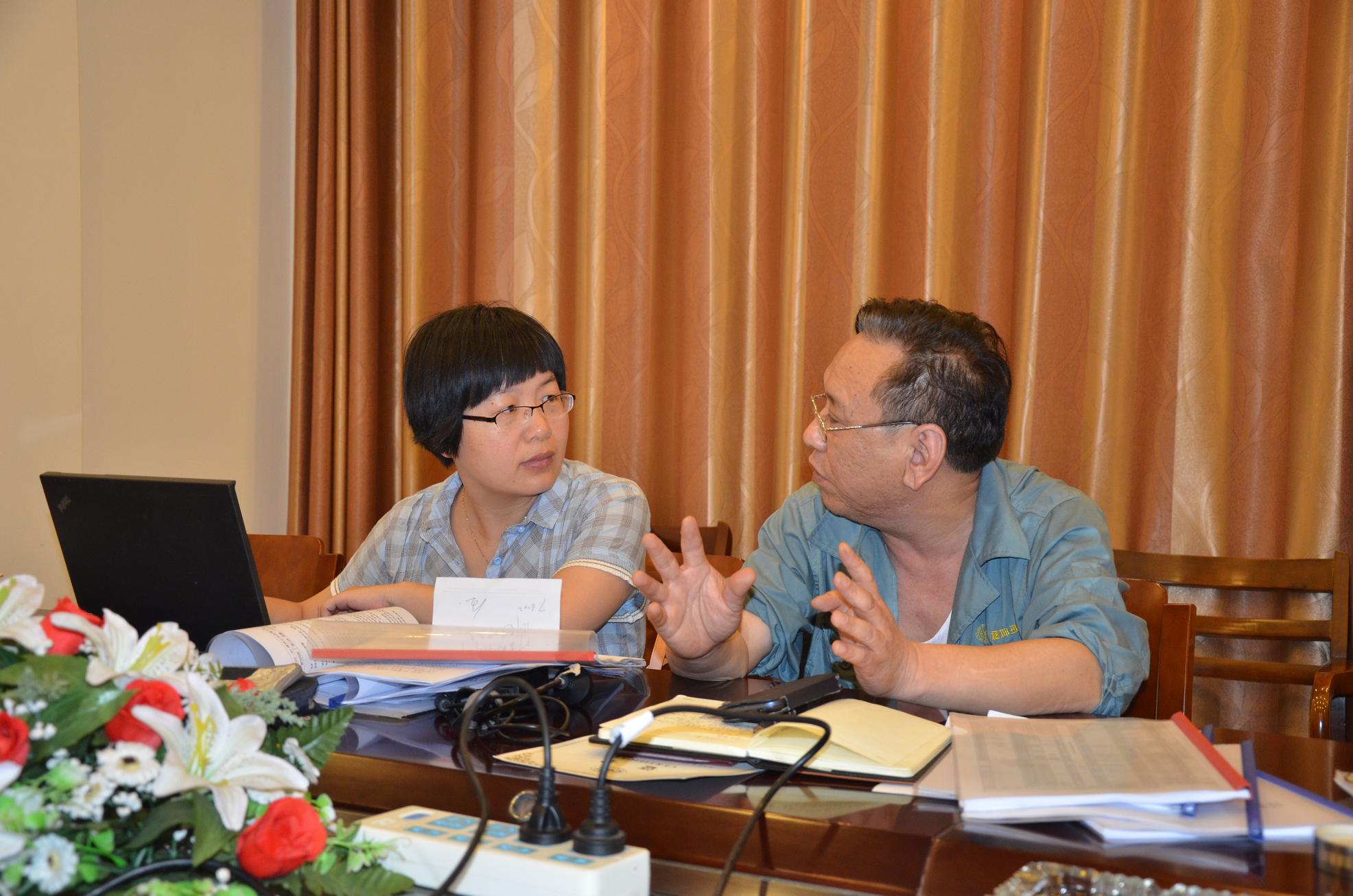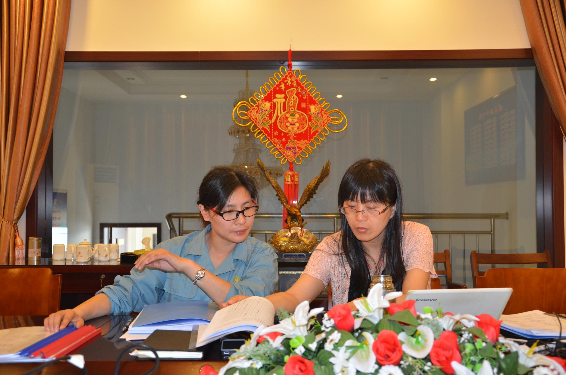 专家组许仁礼组长(右)与我司质检部长严圣涛(左)交流工作